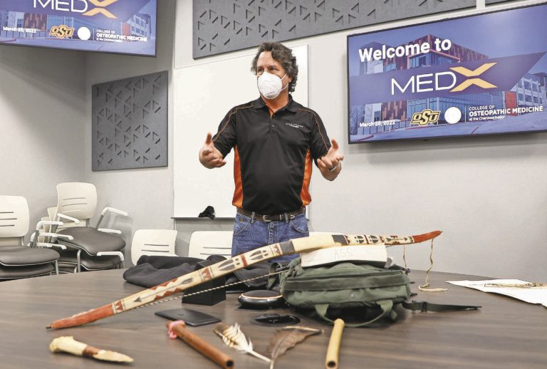 Dr. Kent Smith gives a presentation on Native cultural medicine during a Med-X presentation at the OSU-COM at the Cherokee Nation campus in Tahlequah on March 25, 2022. Matt Barnard