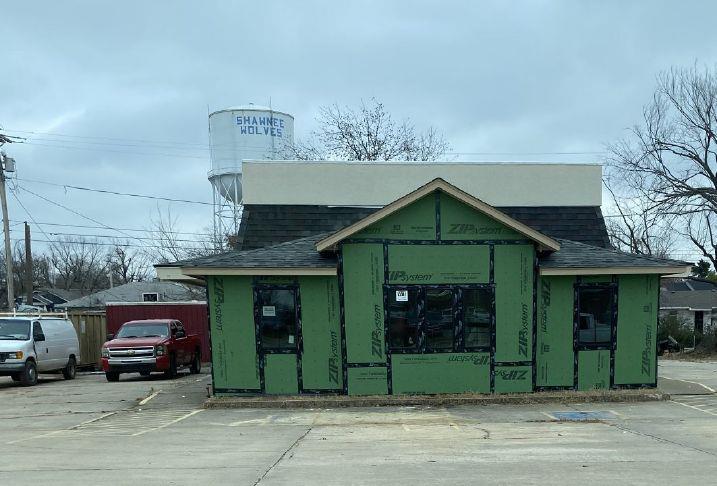 Windows were put in recently in the rebuilt addition on the west side of Frateli's. The Shawnee Italian restaurant has been closed since the April 19 tornado for repair and remodeling. Photo Credit: Vicky O. Misa