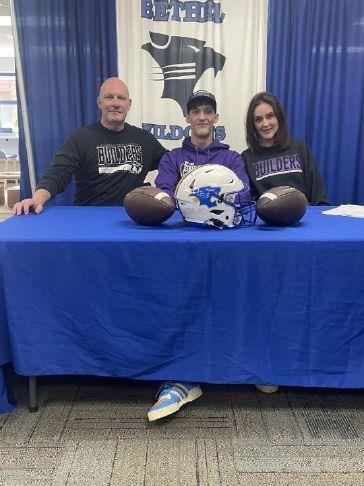 Bethel's Reagan Curry (center) signed a letter-of-intent to play football at Southwestern College in Kansas. Pictured with Reagan are his parents Randy and Julia Curry.Photo Submitted