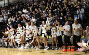 Earlsboro's James Smith uses a Euro step to get by a defender and score on a fast break. Smith picked up the slack after the Wildcats lost two top scorers. He led the team with 17 points against Varnum.Photo by Kent Bush