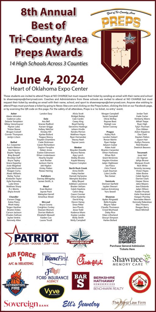 At Preps, more than $30K in scholarships and prizes will be presented. For more information, call (405) 214-3970 or email shawneepreps@cherryroad.com.