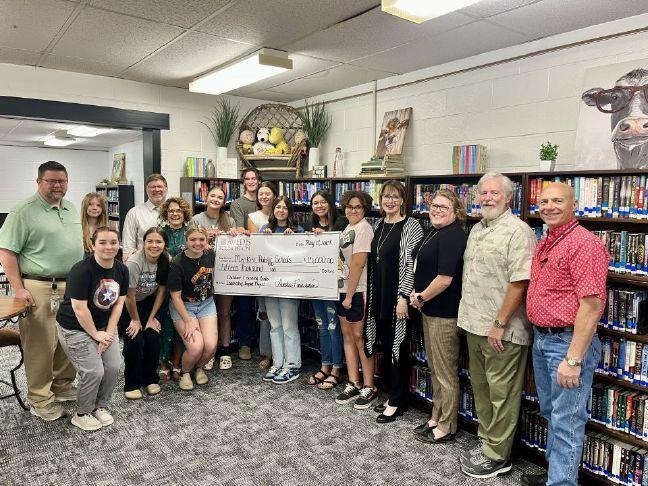 Shown, from left, are Meeker High School Leadership students, along with Brad Buxton, High School principal; Jeff Pruitt, superintendent; Shannon Pruitt, Library Media/Leadership advisor; Dr. Kathy Laster, president and CEO of the Avedis Foundation; Tracy Meeuwsen, program director of the Avedis Foundation; Dr. Steve Trotter, Avedis Foundation board member; and John Bolander, Meeker Middle School/High School counselor. Photo Credit: PROVIDED