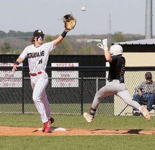 North Rock Creek first baseman Jesse Todd snags a throw during the 2024 season.Photo by Kent Bush