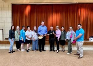 Seminole Public Schools Superintendent Dr. Bob Gragg (left) and Seminole State College President Lana Reynolds (right) sign a partnership for the development of an agriculture education farm at the site of Pleasant Grove School. Photo Credit: SSC