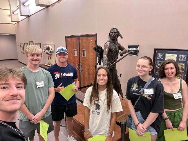 Seminole State College welcomed the incoming freshman class of Presidents Leadership Class students at an orientation event on Aug. 16. Following an overview of the scholarship program, students embarked on a campus-wide scavenger hunt to familiarize themselves with the campus. PLC students pictured (left to right): Hanlon Gottschalk of Prague, Bradley Ruby of Oklahoma City, Logan Hill of Edmond, Zoe Trenchard of Lewisville, Texas, Audra Provaznik of Seminole and Addison Pringle of Shawnee. Photo Credit: SSC