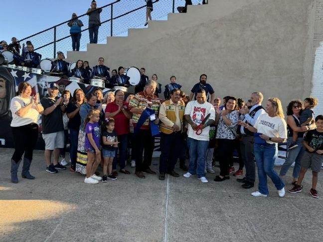 As part of the evening’s festivities, Shawnee Public Schools held a ribbon-cutting ceremony to unveil a new mural honoring Jim Thorpe. The mural, located inside Jim Thorpe Stadium, was created by Native American artist Nicholas Blanchard and serves as a lasting tribute to Thorpe’s athletic achievements and leadership.