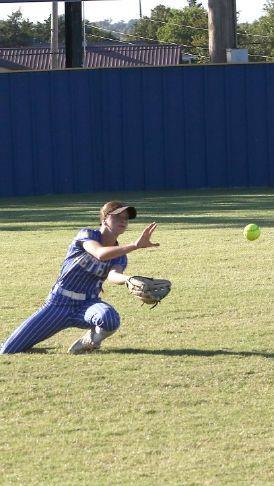 Bethel left fielder Kinley Bowles makes a sliding catch for an out against North Rock Creek.Photo by Kent Bush