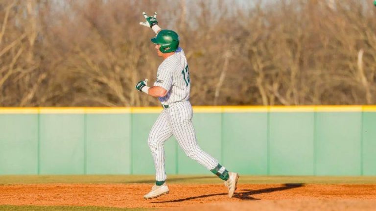 Oklahoma Baptists Zane Bennett circles the bases after hitting a three-run homer on Sunday.Photo courtesy of Oklahoma Baptist Athletics