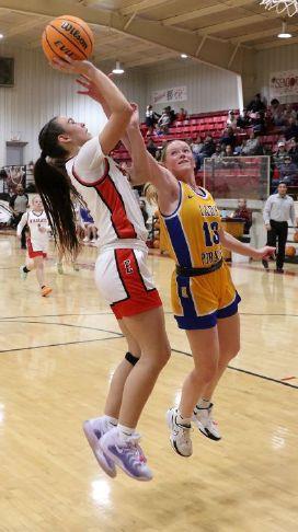 Earlsboros Lilly Gentry scored 19 points in the Lady Wildcats 43-25 win over Moss Monday night. The freshman fought through foul trouble to lead the Lady Wildcats in scoring.Photo by Kent Bush
