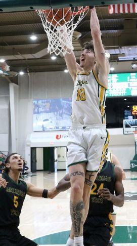 Bison guard JC Curry beat his defender on the baseline and slammed home two points in the Bison win over the Wonder Boys of Arkansas Tech Saturday afternoon.Photo by Kent Bush