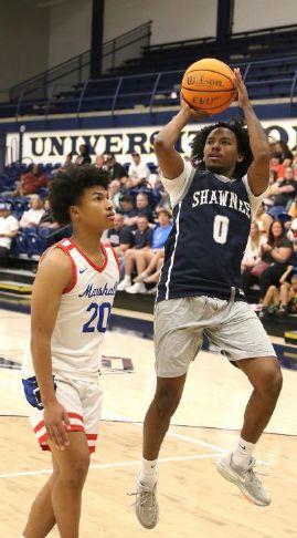 Shawnee's Daytain Patton takes a shot during the 4A-6A All State Game at Hamilton Field House on the Campus of the University of Central Oklahoma on Saturday.Photo by Kent Bush