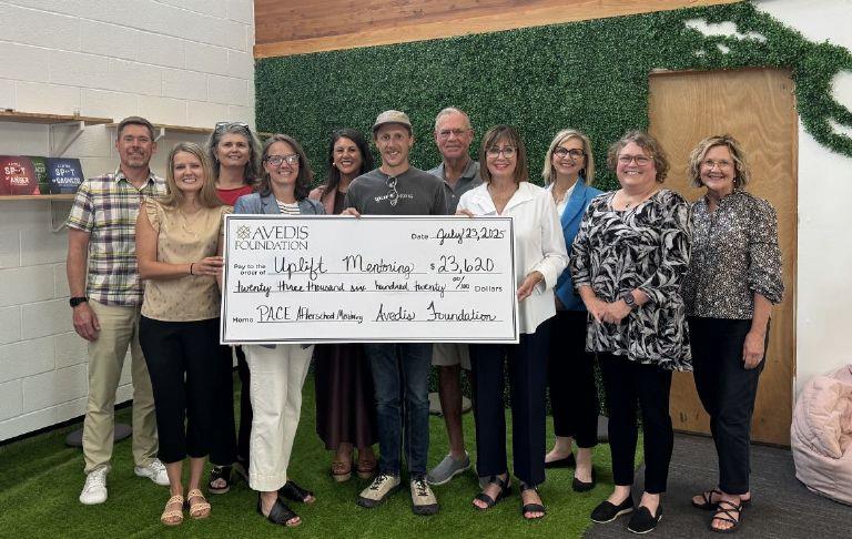 Pictured, from left, are Uplift Mentoring board members Chad Payn, Annie Keehn and Shannon Hester; Lauren Thomas, Avedis Foundation CFO; Lynann Sterk-Brooks, Avedis board member; Uplift Mentoring Executive Director Ryan Brooks; Mark Finley, Avedis board member; Avedis President and CEO Dr. Kathy Laster; Avedis Board Chair Jill Spencer; Avedis Senior Program Director-Data Analyst Tracy Meeuwsen; and Audrey Seeliger, external relations-special events, with Avedis. Photo Credit: Provided