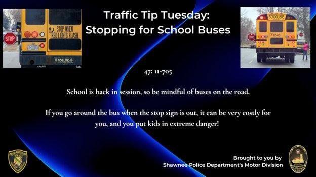 Home Uncategorized SPD: Traffic Tip Tuesday SPD: Traffic Tip TuesdayAugust 18, 2025News, Uncategorized Photo Credit: SPD From SPD reports School is back, so the Shawnee Police Department reminds drivers to watch for buses. “Stop when the bus has its stop sign… Login to continue reading Login Sign up for complimentary access Sign Up Now Close Previous Post Gardening: Beat the heat in August Next Post Saturday Fast-Pitch roundup Featured Local Savings -