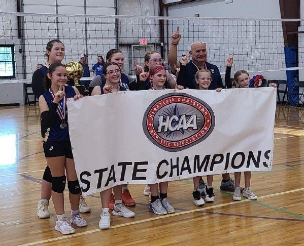 The Liberty Academy girls' junior high volleyball team after winning state. Photo Credit: Photo Submitted