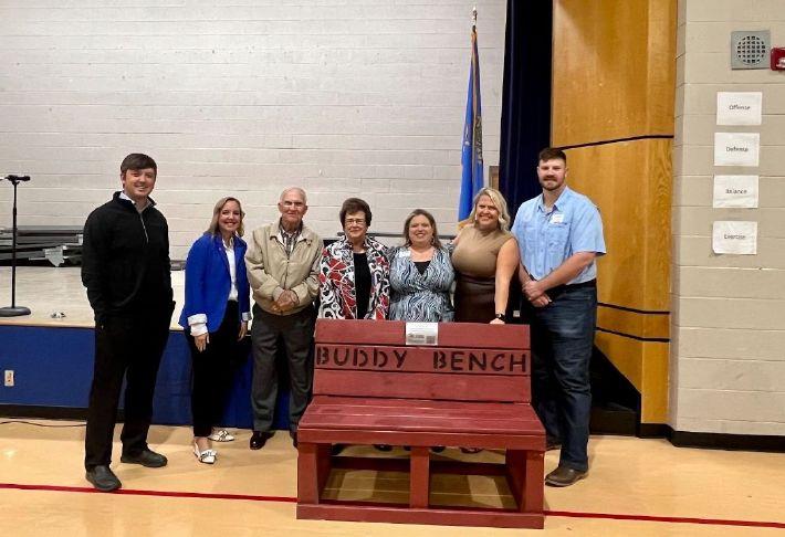 Shawnee Public Schools is proud to announce the installation of new “Buddy Benches” across its campuses, thanks to a partnership with Rose Rock Habitat for Humanity, 2024-25 Leadership Shawnee class, and the generous support of local sponsors. Designed to foster friendship, inclusion, and connection, these bright red benches offer a unique and welcoming space where students can find new friends and reach out to others.The intentionally red benches stand out on each school campus, signaling a place where students can sit when they are seeking companionship or support.