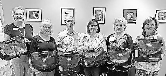 Hosts for the Leadership Oklahoma (LOK) retreat held at St. Crispin’s Conference Center display personalized leather “Welcome to Seminole” bags prepared for members of Class 35 of the statewide leadership program. A reception held Wednesday night was sponsored by the Jasmine Moran Children’s Museum, BancFirst and Seminole State College.
