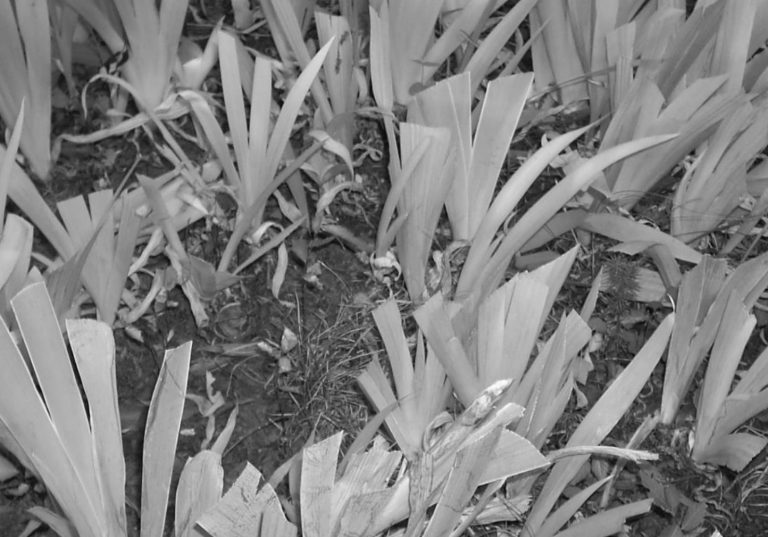 By now most Iris plants are looking pretty worn out. The leaves have provided nourishment to the rhizomes. If you want to wait until the weather moderates in September to apply these suggestions, that would be OK . What you should do now is prune the existing leaves to about 4 to 6 inches. A suggested procedure that is more attractive is to prune the plant so that leaves look like a teepee. The middle leaf is tallest and the side leaves are at an angle. (This suggestion from the literature is easier said than done. Instead I just tried to make the center leaf taller than the flanking leaves