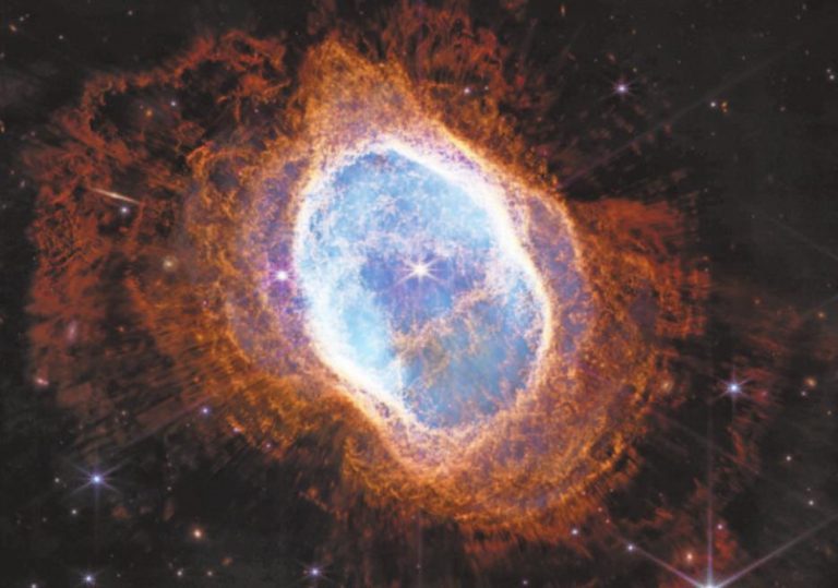 GREENBELT, Md. (AP) — A sparkling landscape of baby stars. A foamy blue and orange view of a dying star. Five galaxies in a cosmic dance. The splendors of the universe glowed in a new batch of images released Tuesday from NASA’s powerful new telescope.