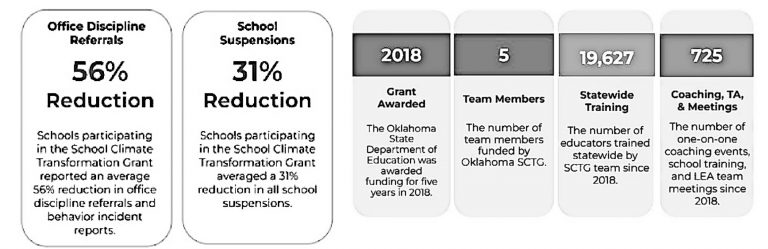 A five-year, $3.7 million School Climate Transformation grant is making a significant impact, according to new data released by the Oklahoma State Department of Education (OSDE). The grant was awarded in 2018 through the U.S. Department of Education and is administered through OSDE.