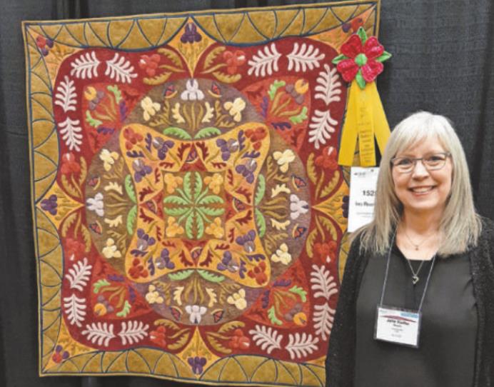 Shawnee resident and longtime quilter Jane Powers placed third in the Small Wall Quilts First Entry category with her “Iris Rhapsody” quilt at the AQS Paducah Quilt Contest in Kentucky on April 27.