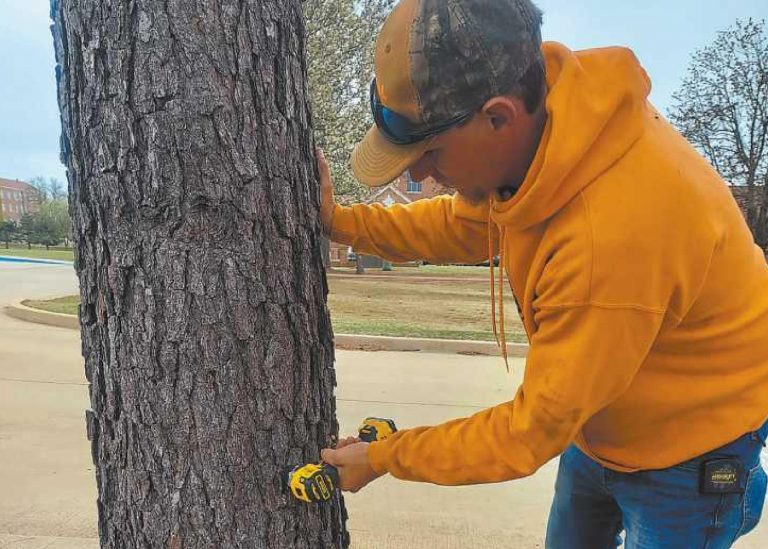 William Gordon, Master Gardener and groundskeeper at Oklahoma Baptist University, keeps a close eye on the campus. Over the past 18 months, he and his team have been dealing with a decline in many of the pine trees around the University’s Bison Hill home. With a few of the trees already lost and conventional methods and treatments not turning things around, they knew it was time to seek other treatment options.
