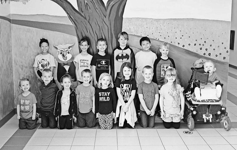 March Masters of Manners for Bethel Lower Elementary are front row from left to right: Dawson Malouf, Jaxon Morlan, Makenna Cartwright, Gabe Stone, Lexi Owens, Gentry Stith, Blaise Mullendore, Aurora Austin, Wesley Arnold. Back Row: Bentley Clark, Charlsie Baden, Eli Hanmer, Gavin Anderson, Davian Trussell, Bennett Carpenter. Not Pictured: Camille Winkler. They were recognized at school for respecting differences and met Wilbur, the Wise Ol' Owl. They received a brag tag (like a dog tag) and gift certificates to Dakota’s.